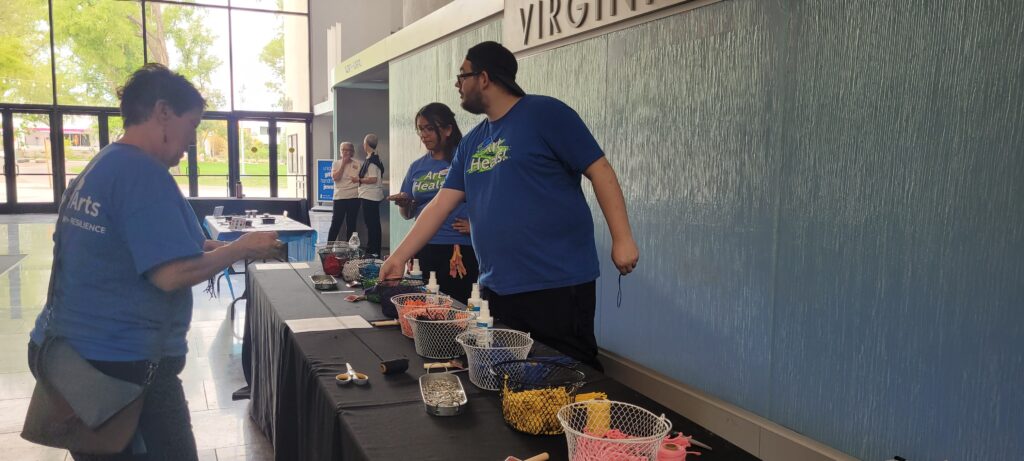 Audience members were also invited to engage in a multitude of art activities in the atrium, including folding origami swans, stringing colorful beaded Bravery Bracelets, and weaving macramé feathers. Art Heals Arizona volunteer mentors and staff supported children in making each of their creations.